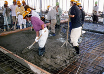 モアークリートの添加により、ブリージング現象を低減し、後作業を容易にすると共に、ブリージング欠陥(クラック発生)を低減します。また、生コン中の気泡・水泡が分散され、均一で緻密なコンクリートとなり、クラックの少ない美しい仕上がりとすることに貢献します。