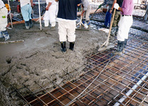 モアークリートの添加によって、例えば、12cmの生コンはポンプの筒先から出た状態で、スランプ14cm位の感覚で作業することができ、単位水量を絞りながら土間工事の作業性を確保するのに貢献します。